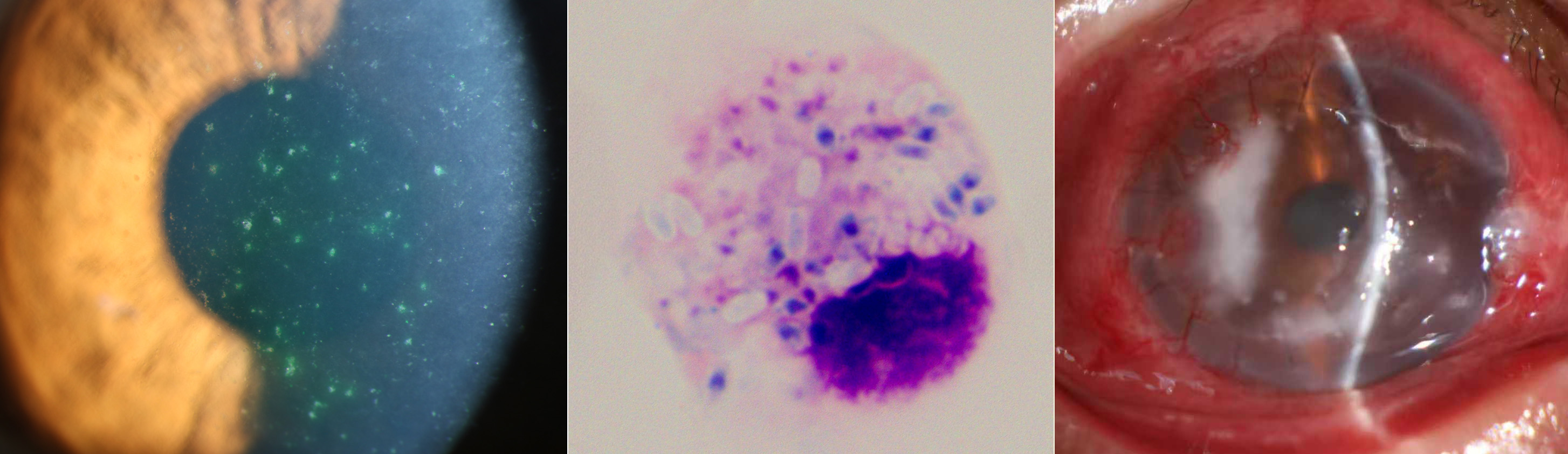 症状、眼部体征,活体角膜共聚焦显微镜检查、角膜刮片细胞学、病原体培养及PCR检测、mNGS结果,疾病复发率、治愈率。